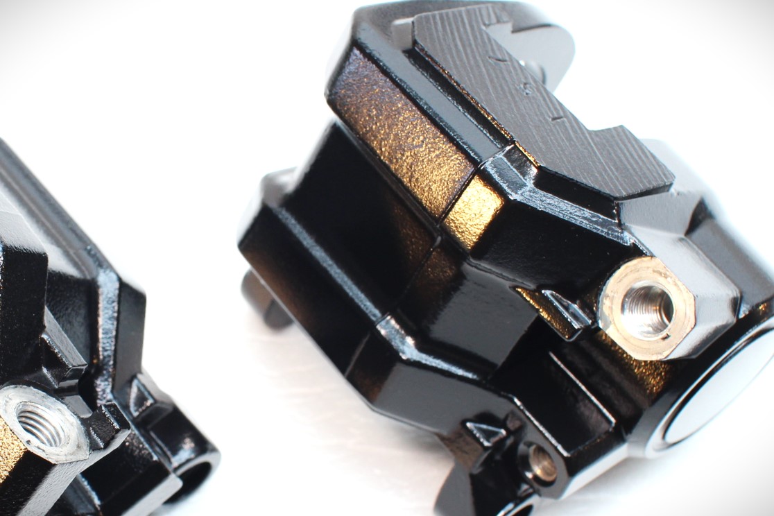SR400では使用されないキャリパー取り付け穴が存在するため