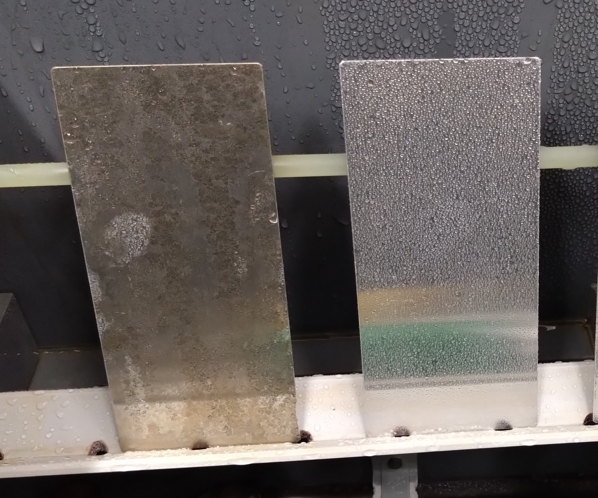 これらの結果から、MC-5100 は塩害環境条件下において優れた防食性能を発揮し、アルミの質感を保持したまま長期的な外観維持が可能であることが確認された。特にアルカリやシンナーなどに対する耐薬品性に優れ、バフ研磨・バレル研磨・ヘアライン加工など、アルミの金属光沢を活かした仕上げとの相性が良い。