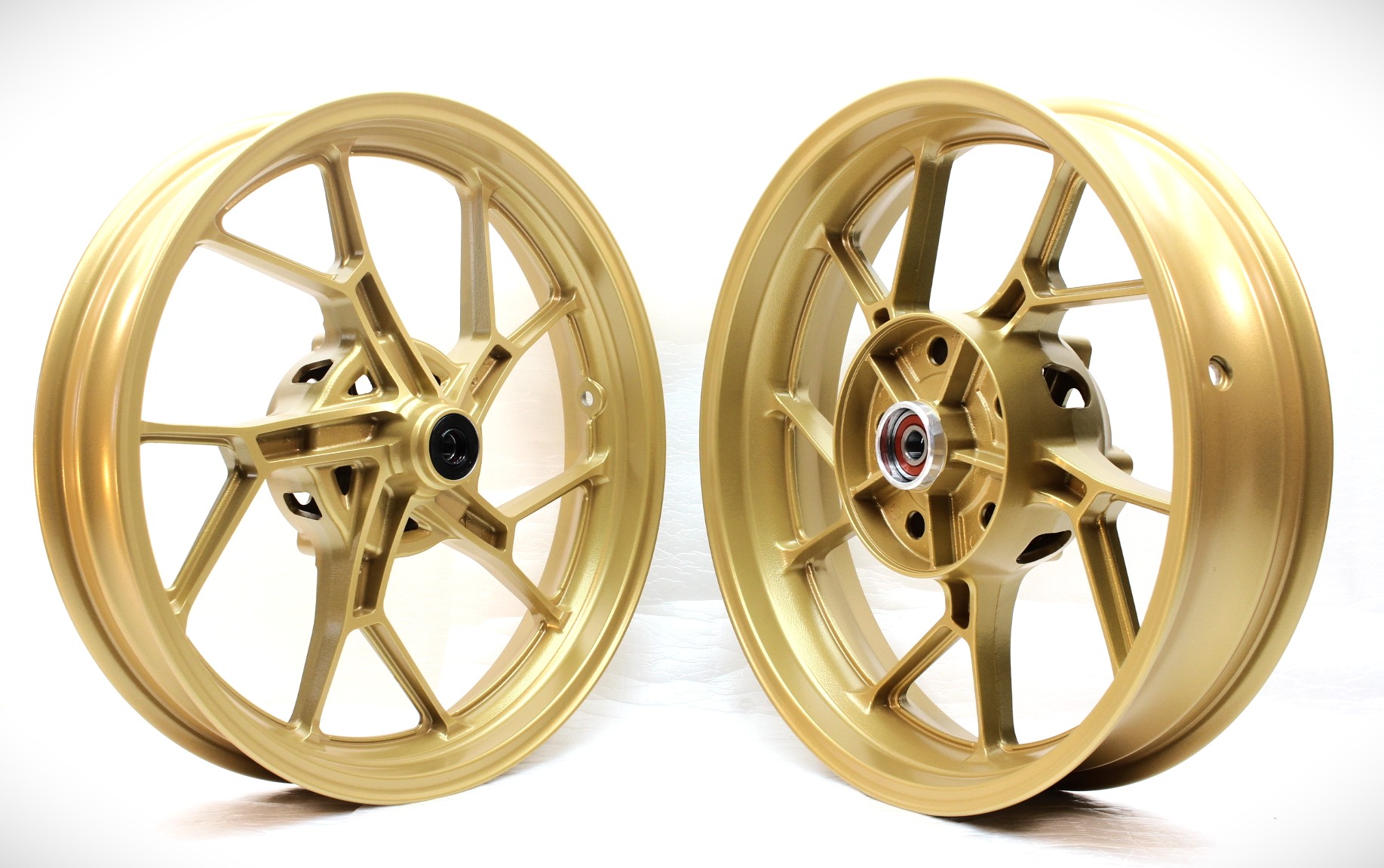 今回はこのホイールに、金属光沢の強いゴールドパウダーの中でも特に発色が鮮烈な「6625 GOLDTASTIC」を採用した。華やかでありながら上品さを損なわない色調が魅力で、GSX250R の足元に力強い存在感を加える仕上がりとなっている。