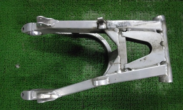 施工対象のスイングアームはスペックエンジニアリングによる、ゼファー1100用純正スイングアームへのスタビライザーを追加溶接加工されたパーツだ。