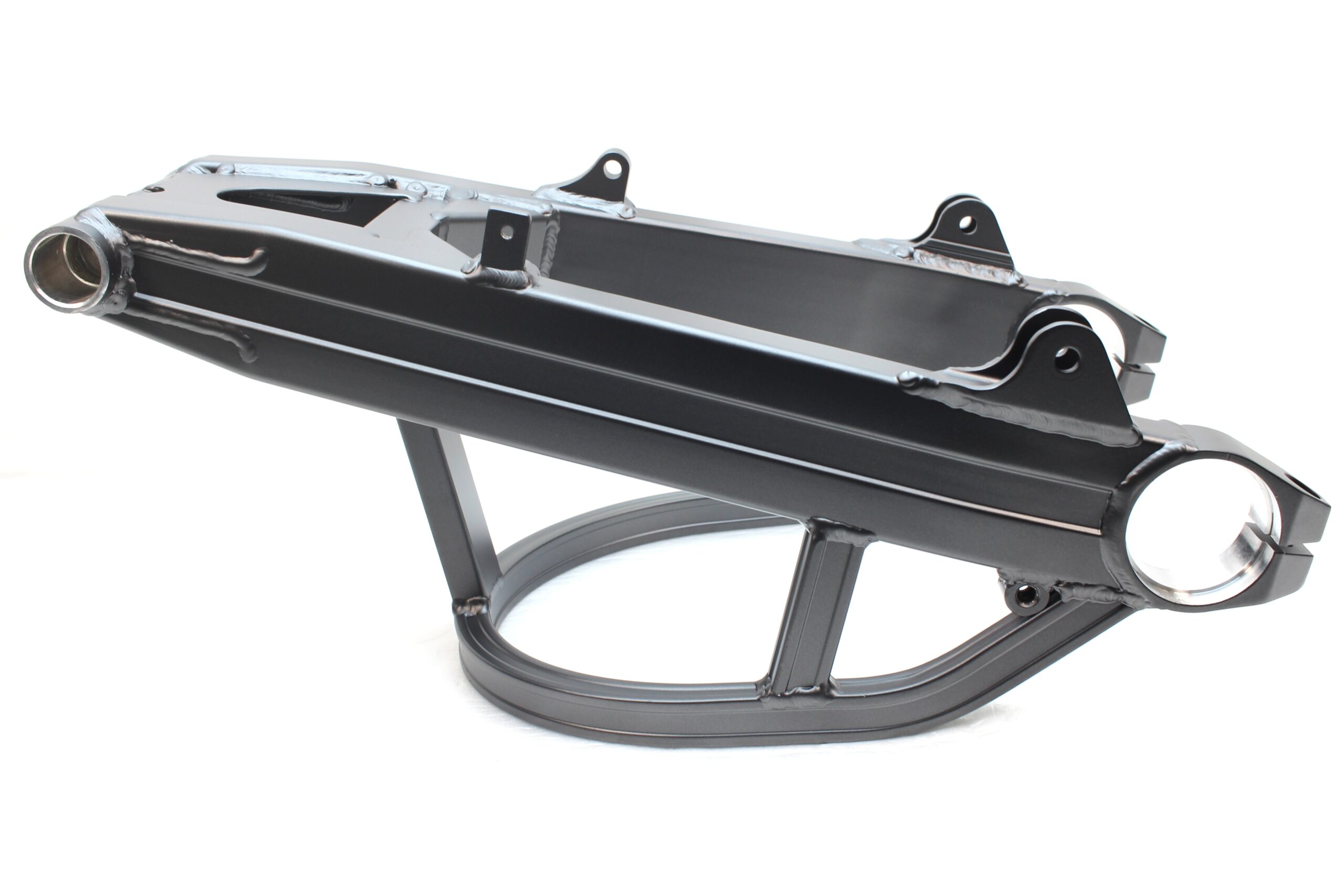 追加加工、とりわけ溶接加工を伴う場合、既存塗膜の完全な剥離が前提条件となる。加工後は、再塗装やアルマイト処理などの表面処理を行わなければならない。スイングアームは足回り部品であり、走行中はタイヤからの飛び石や泥はねを直接受ける環境に置かれるため、塗膜には高い耐摩耗性と耐候性が求められる。この条件下では、パウダーコート(粉体塗装)やセラコートといった、高耐久塗装が有効な選択肢となる。
