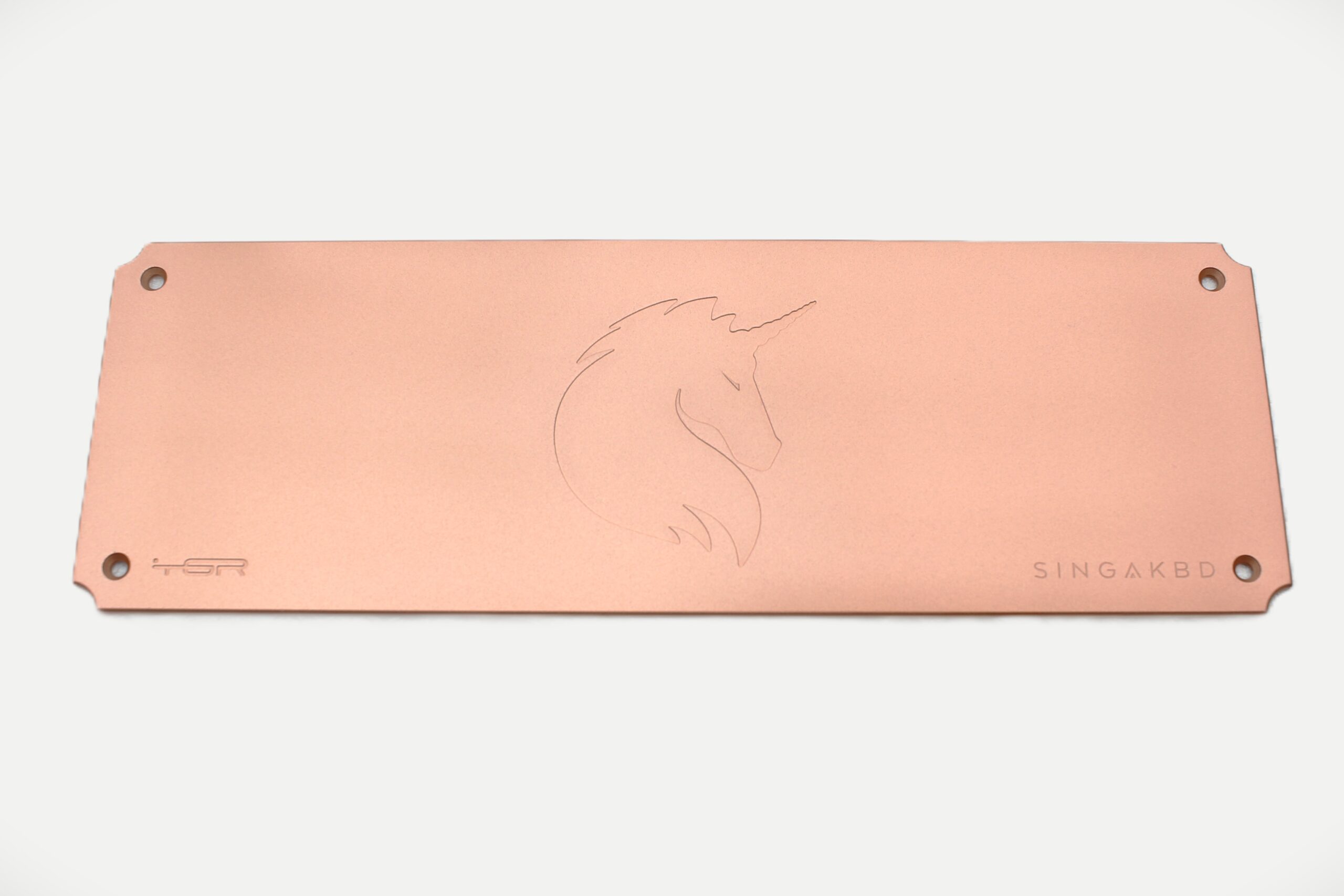 今回の施工対象は、ハイエンドモデル Unikorn R2.2 に装備される銅(ブラス)製ウェイト。「Unikorn」シリーズはSINGAKBDを象徴するフラッグシップであり、打鍵感、音、構造美のすべてにおいて完成度を極限まで高めた設計が特徴だ。外観にとどまらず、内部構造や素材選定に至るまで、使用体験そのものが設計されている。