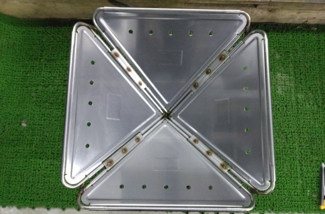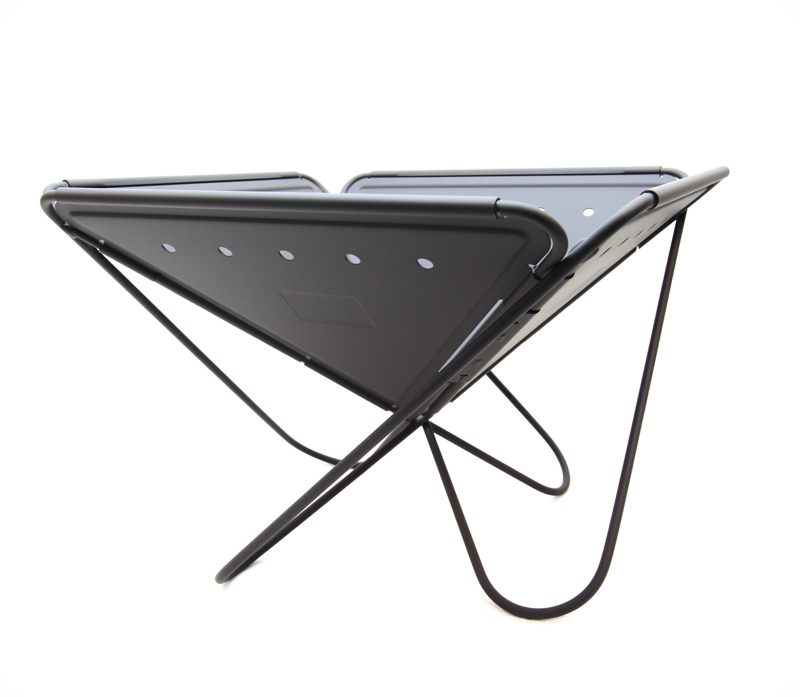 焚火台本体にはステンレス素材が用いられており、高温の炎や熱に強く、変形しにくい。錆の発生も抑えられるため、長期にわたり使用できる設計となっている。一方で、ステンレス特有の光沢は光の反射が強く、自然の中では工業的・都市的な印象を与え、「人工物として主張しすぎる」と感じられる場合もある。